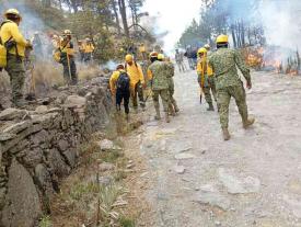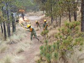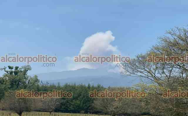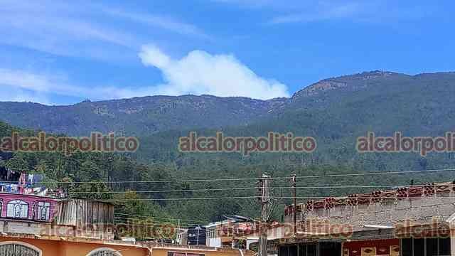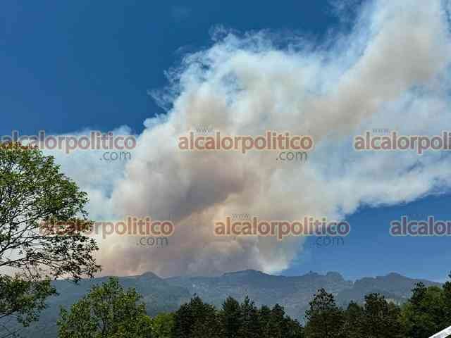 Xico, Ver., 17 de abril de 2025.- Gran columna de humo se observa por el incendio en el Cofre de Perote. Encabezados por el subagente municipal de Xico Viejo, Jacobo Morales, brigadistas continúan combatiendo el siniestro.