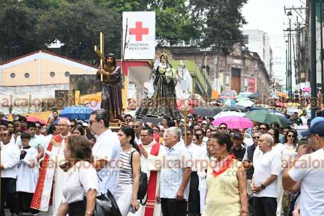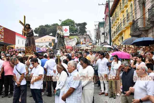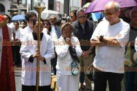 Xalapa, Ver., 18 de abril de 2025.- El arzobispo Jorge Patrón Wong encabezó el Viacrucis de la Catedral.