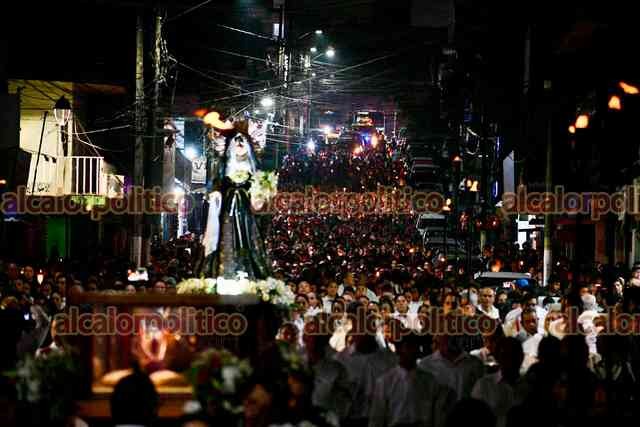 Xalapa, Ver., 18 de abril de 2025.-La noche de este Viernes Santo, multitud de católicas/os se integraron a la Procesión del Silencio, tras el recuerdo del Viacrucis y la Crucifixión del Viernes Santo para acompañar la imagen de María La Dolorosa, tradición que se organiza en múltiples ciudades que profesan la fe católica.
