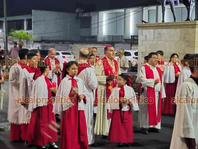 Orizaba, Ver., 18 de abril de 2025.- Aunque la Procesión del Silencio, es primordialmente para que participen los varones, esta noche en Orizaba, personas de todas las edades y familias completas decidieron salir en esta expresión de fe, encabezados por el obispo Eduardo Cervantes Merino.