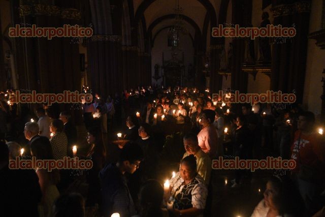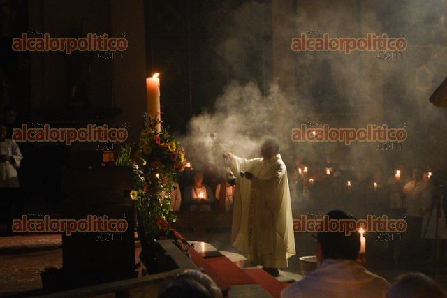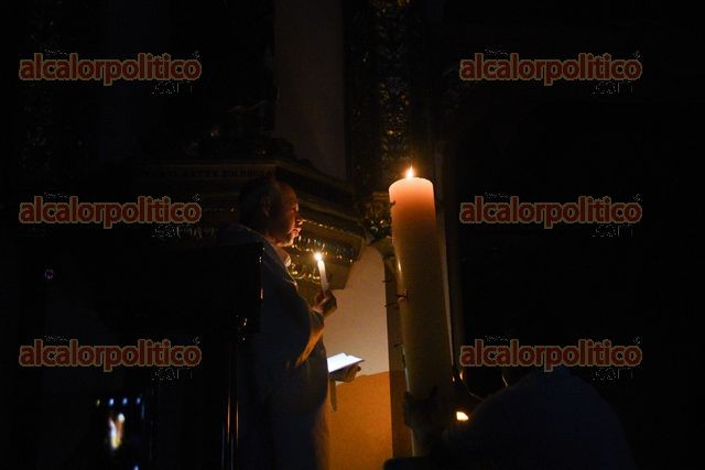 Xalapa, Ver., 19 de abril de 2025.- En la Catedral Metropolitana se llevó a cabo la Vigilia Pascual y la Ceremonia del fuego nuevo, este Sábado Santo.