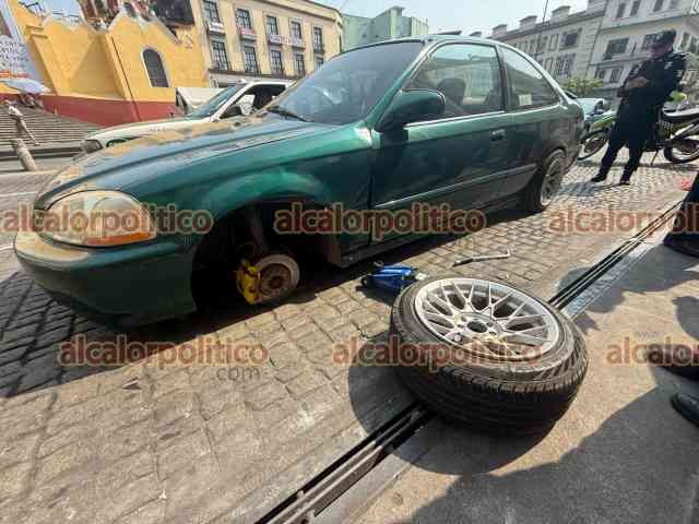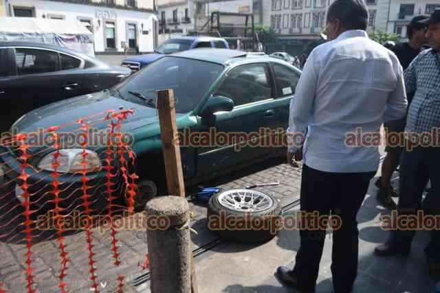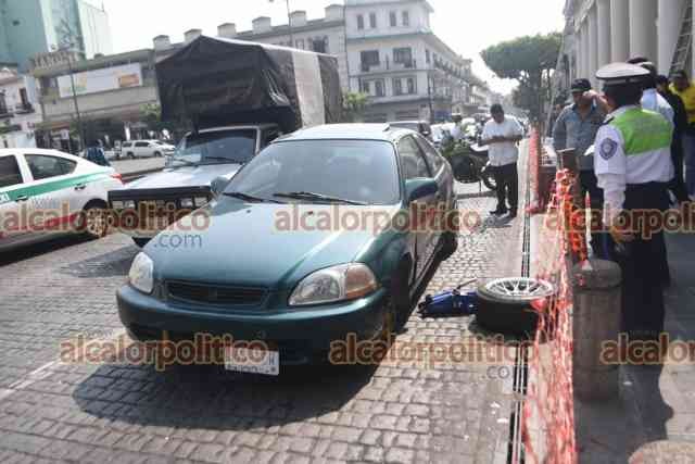 Auto se queda sin llanta, en pleno centro de Xalapa