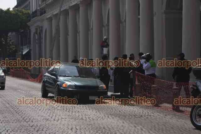 Xalapa, Ver., 24 de abril de 2025.- Auto se quedó sin una llanta frente al Palacio de Gobierno. Lo que complicó la circulación por varios minutos. Agentes de Tránsito agilizaron el tráfico y auxiliaron al conductor.