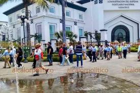 Veracruz, Ver., 29 de abril de 2025.- El Sistema Nacional Portuario de Veracruz (ASIPONA) participó en el Simulacro Nacional de Protección Civil 2025. Llegó personal de bomberos y equipo de auxilio, trabajadores desalojaron instalaciones y se formaron en explanada de la Plaza de la República.