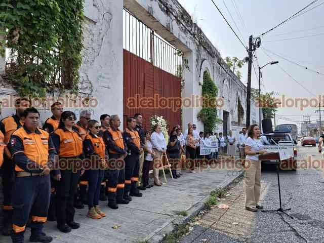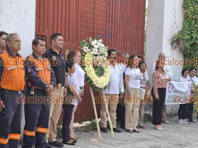Córdoba, Ver., 3 de mayo de 2025.- En la colonia Las Estaciones, frente a la exfábrica ANAVERSA se hizo guardia de honor y depósito de ofrenda floral en compañía de Rosalinda Huerta Rivadeneyra, representante de los familiares de las víctimas de la catástrofe.