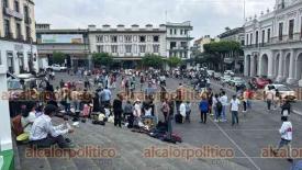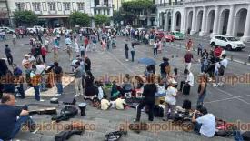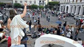 Xalapa, Ver., 4 de mayo de 2025.- Feligreses se reunieron en la Plaza Lerdo para danzar y cantar alabanzas a Dios.