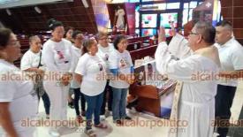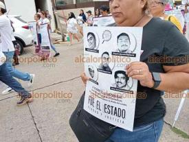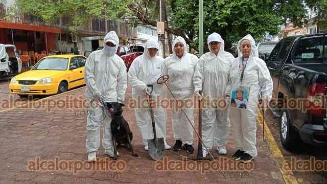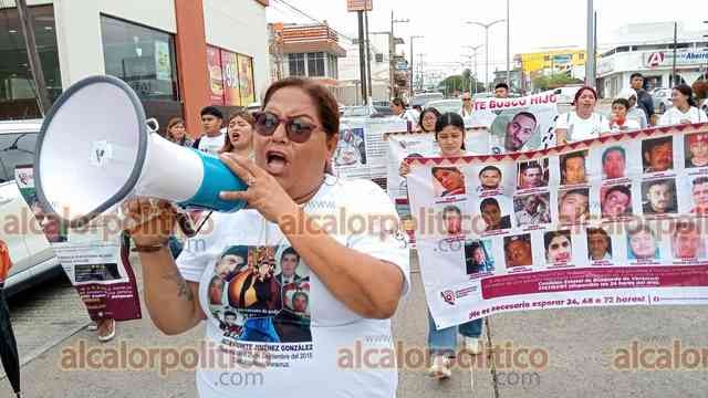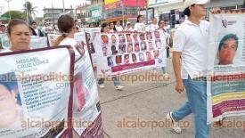 Coatzacoalcos, Ver., 11 de mayo de 2025.- Portando overoles forenses y carteles con el rostro de sus familiares, integrantes de colectivos marcharon la mañana de este sábado por la avenida Ignacio Zaragoza hasta llegar al parque Independencia para concluir con una misa en la catedral de San José.