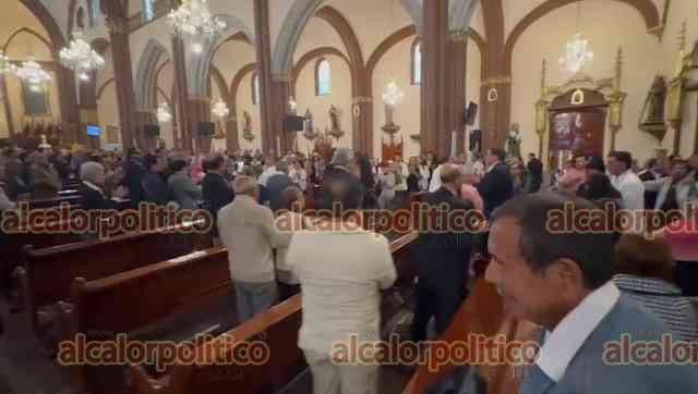 Xalapa, Ver., 11 de mayo de 2025.- Entre aplausos, las cenizas del exgobernador Fidel Herrera fueron recibidas en la Catedral Metropolitana de Xalapa, en manos de su hijo Javier Herrera Borunda.