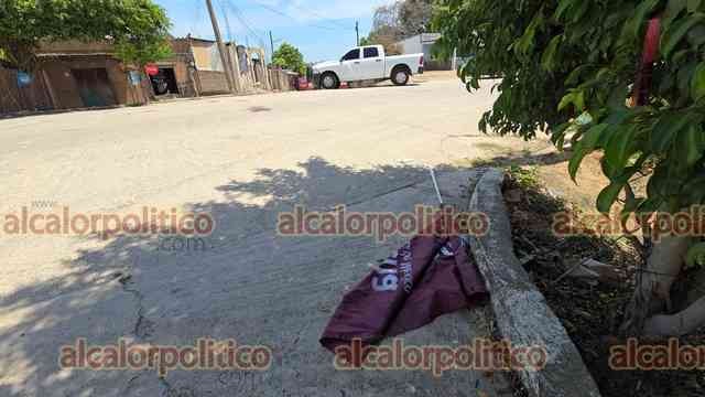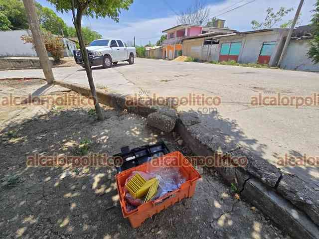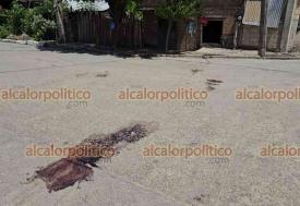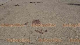 Texistepec, Ver., 12 de mayo de 2025.- Rastros de sangre y una veladora se observan en el cruce de las calles Libertad y Matamoros, en el barrio Camino a Jáltipan, donde la noche de ayer domingo mataron a la candidata morenista Yesenia Lara.