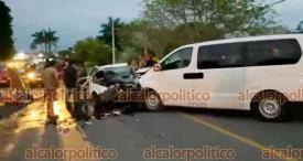 San Rafael, Ver., 10 de mayo de 2025.- Choque entre camioneta y auto dejó 4 muertos la noche de este sábado, en la carretera federal 129 Amozoc-Nautla, a la altura de la localidad El Ojite. Hubo varios heridos que fueron trasladados a hospital IMSS-Bienestar de Martínez de la Torre.