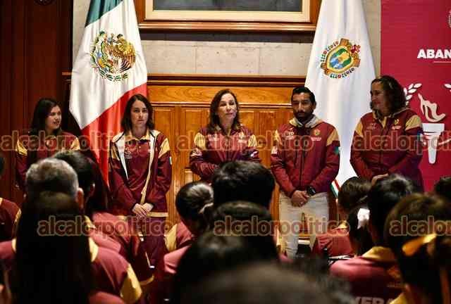 Xalapa, Ver., 13 de mayo de 2025.- La gobernadora Rocío Nahle encabezó la ceremonia de abanderamiento a la selección que participará en la Olimpiada Nacional CONADE 2025.