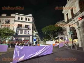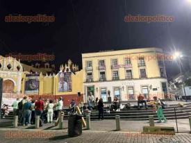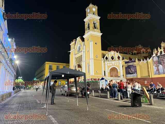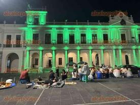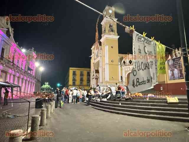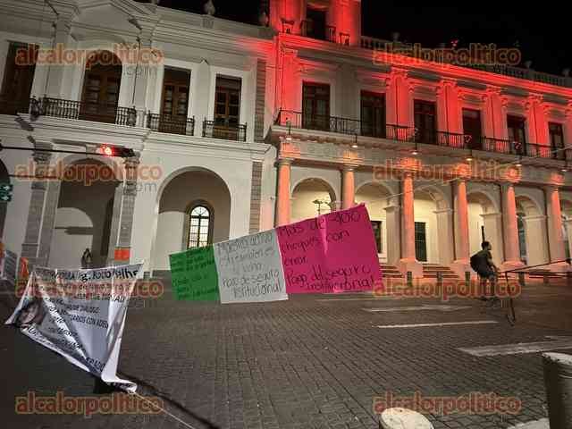 Maestros jubilados mantienen cerrada la vialidad en el centro de Xalapa, pernoctan en la plaza Lerdo