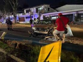 Coatepec, Ver., 17 de mayo de 2025.- Automovilista causa un accidente en el bulevar Xalapa-Coatepec, la noche de este sábado, a la altura de Plaza Orquídeas, conocido también como crucero de La Florida.