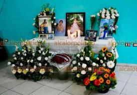 Xalapa, Ver., 18 de mayo de 2025.- La familia de América encendió veladoras en el patio de su casa en la colonia Zapata. El altar, con su retrato y flores frescas, fue levantado pocas horas después de que les confirmaron su muerte tras el choque del Buque Cuauhtémoc contra el puente de Brooklyn, en Nueva York.