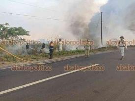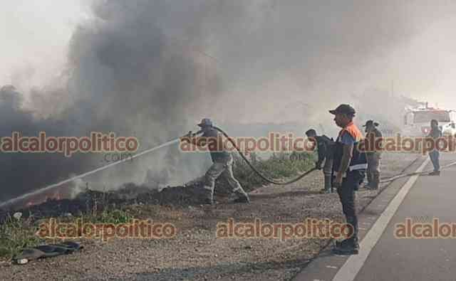 Coatzacoalcos, Ver., 19 de mayo de 2025.- Un gran incendio de pastizales a un costado de la carretera Coatzacoalcos-Minatitlán, en el tramo conocido como Las Matas, provocó el cierre de la circulación, la mañana de este lunes.