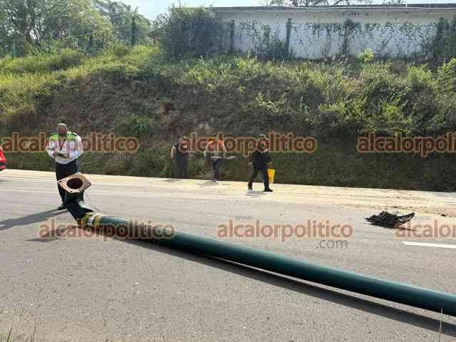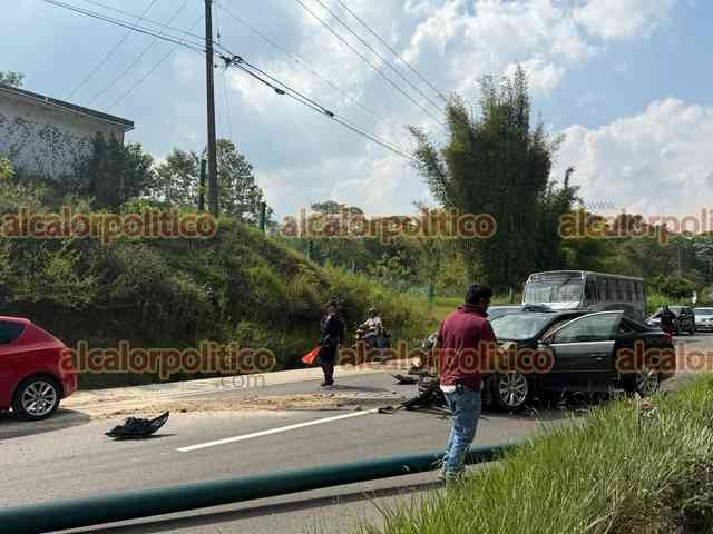 Auto derriba poste en la carretera Xalapa-Coatepec