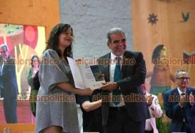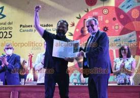 Xalapa, Ver., 23 de mayo de 2025.- Como parte de la inauguración de la FILU 2025, se entregó el premio de dramaturgia “Emilio Carballido” a Sayuri Navarro y el premio latinoamericano de primera novela “Sergio Galindo” a Marcos Cortés.