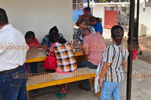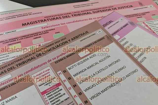 Veracruz, Ver., 1° de junio de 2025.- En la casilla 4812 para la elección judicial, montada en las canchas de una escuela, los votantes se sorprendían y quejaban por la cantidad de boletas que recibían. Algunos terminaron compartiendo apuntes, como si se tratara de un trabajo escolar en equipo.