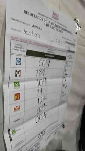 Acatlán, Ver., 1° de junio de 2025.- Lectora comparte que quebraron las urnas y rompieron los votos en la cabecera municipal. En este municipio, hasta las 23:00 horas y de acuerdo al PREP, MORENA-Verde registraba 467 votos, el PRI 413, PT 412 y MC 359.