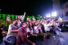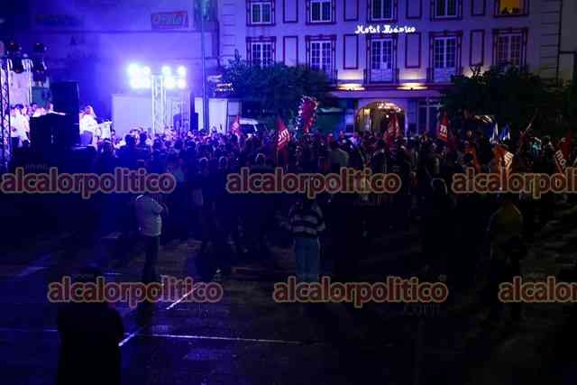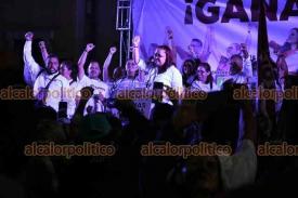 Xalapa, Ver., 1° de junio de 2025.- Desde la plaza Lerdo, la morenista Daniela Griego Ceballos celebró junto a simpatizantes su virtual triunfo.