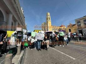 Xalapa, Ver., 4 de junio de 2025.- Padres de familia y alumnos del Colegio Preparatorio que protestan por el cambio de Director del turno matutino, bloquearon la calle Enríquez frente al Palacio de Gobierno. Tome previsiones.