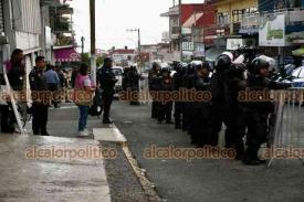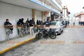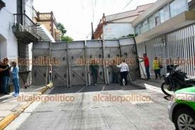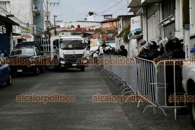 Xalapa, Ver., 6 de junio de 2025.- Blindan zona aledaña a la sede del OPLE ante rumores de supuestas protestas de habitantes de municipios de los que se realiza conteo de votos en sus oficinas. Hay presencia de SSP y Guardia Nacional.
