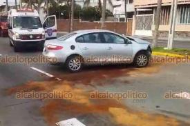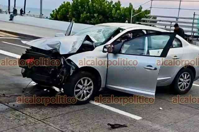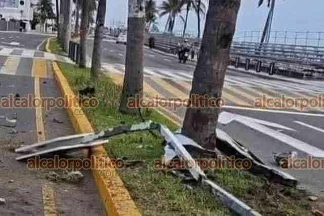 Choca auto contra palmera y luminaria en Veracruz Puerto