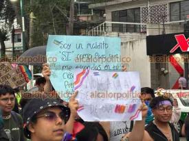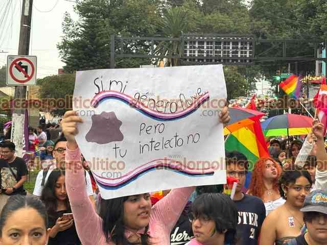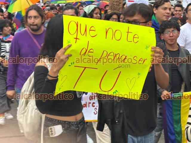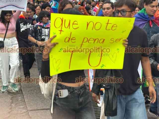 Xalapa, Ver., 14 de junio de 2025.- Integrantes de las disidencias sexuales marchan del Teatro del Estado a Plaza Lerdo para exigir igualdad de derechos. “No es una fiesta, es una protesta”, gritan al unísono, recordando que el orgullo también es resistencia.