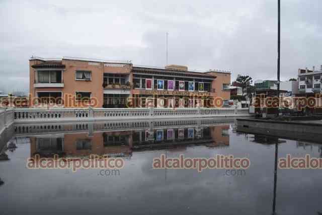 Xalapa, Ver., 17 de junio de 2025.- Por las lluvias, parte del mirador del Parque Juárez se inundó, pese a que recientemente esta área fue rehabilitada.