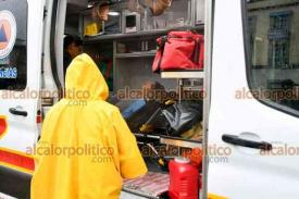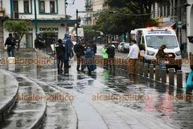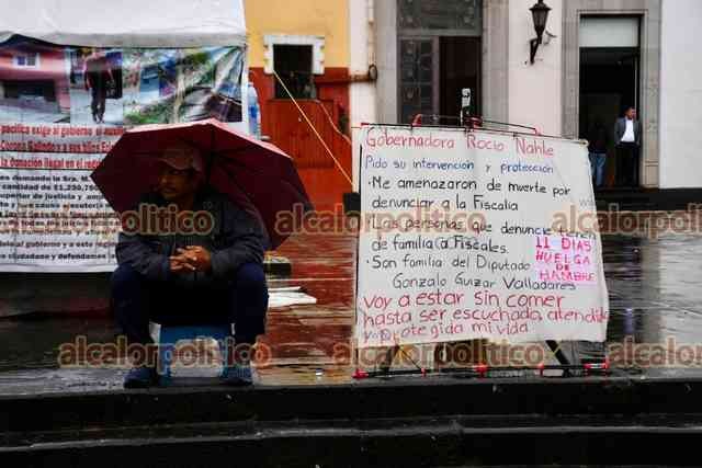 Xalapa, Ver., 19 de junio de 2025.- Paramédicos atendieron al hombre que lleva 11 días en huelga de hambre en la Plaza Lerdo por un pleito por terrenos en Coatzacoalcos. Fue valorado y no requirió traslado a hospital.