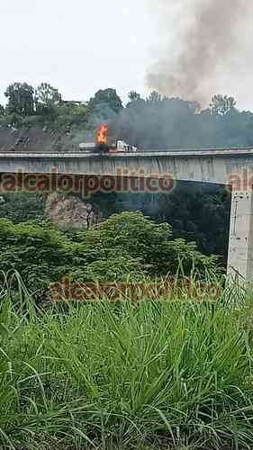 Pipa se incendia en el libramiento Banderilla-Miradores