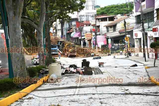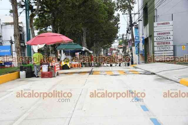 Xalapa, Ver., 2 de julio de 2025.- Comerciantes establecidos de la avenida Araucarias bloquearon la circulación para exigir al Ayuntamiento que acelere rehabilitación en esta vialidad y se reabra el tramo concluido, pues se han visto afectados en sus ventas.