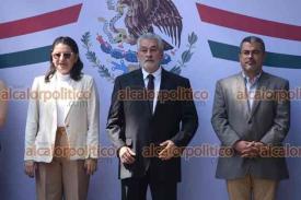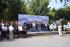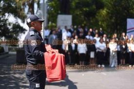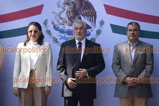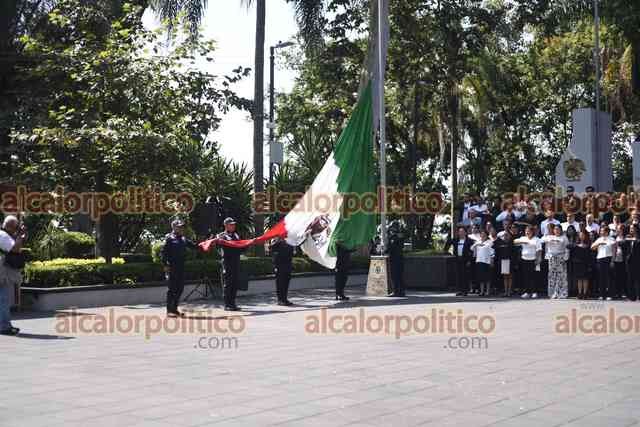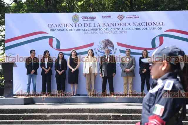 Xalapa, Ver., 7 de julio de 2025.- Autoridades municipales encabezadas por el alcalde Alberto Islas participaron en el izamiento de bandera en el parque Juárez.