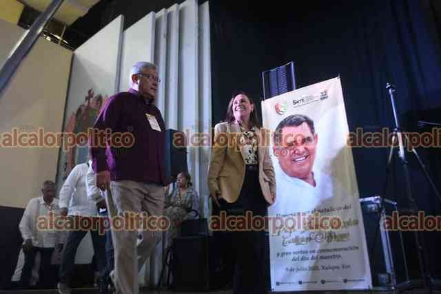 Xalapa, Ver., 9 de julio de 2025.- La gobernadora Rocío Nahle llegó a la Escuela Normal Veracruzana por el homenaje a Juan Nicolás Callejas que organizó la Sección 32 del SNTE.