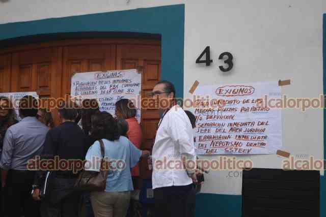 Xalapa, Ver., 10 de julio de 2025.- Docentes jubilados que exigen pólizas de retiro y pensiones mantienen este jueves la toma de oficinas del SSTEEV (Seguro Magisterial), protesta que comenzó el lunes.