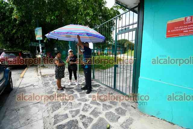 Xalapa, Ver., 11 de julio de 2025.- Padres de familia de la escuela Secundaria General No. 4 tomaron el plantel. Exigen el regreso del Director quien fue suspendido.