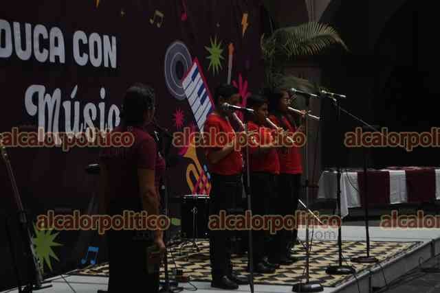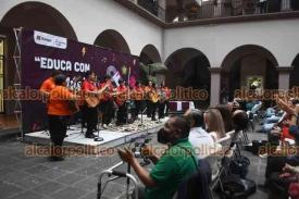 Xalapa, Ver., 11 de julio de 2025.- En el patio del Palacio Municipal se presentaron grupos musicales como parte del evento “Educa con Música”, con la presencia del alcalde Alberto Islas