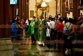Xalapa, Ver., 13 de julio de 2025.- El arzobispo de Xalapa, Jorge Patrón Wong, ofició la misa dominical en Catedral.