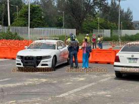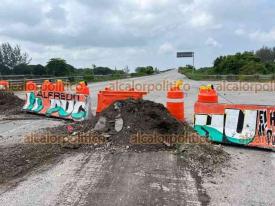 Veracruz, Ver., 14 de julio de 2025.- Obreros del nuevo distribuidor vial hacia el puerto bloquearon la carretera Veracruz-Xalapa, a la altura del Kilómetro 13.5, exigiendo el pago de tres semanas de salarios retenidos.