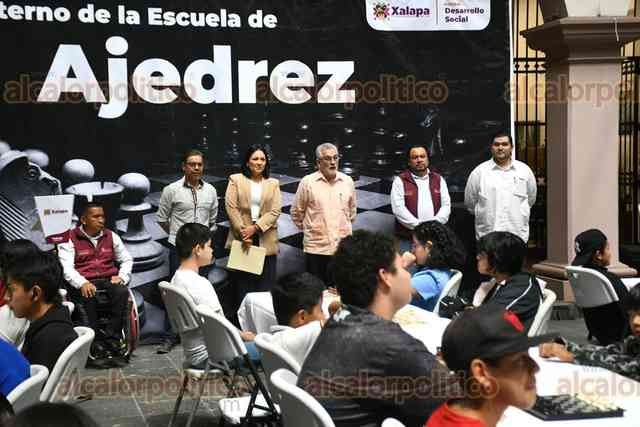 Xalapa, Ver., 18 de julio de 2025.- El alcalde Alberto Islas inauguró el torneo interno de la Escuela de Ajedrez, en el patio central de Palacio Municipal.