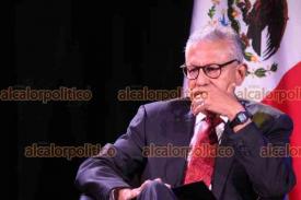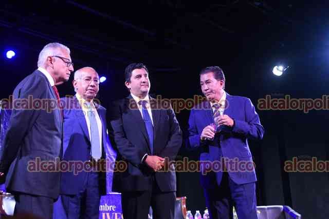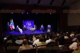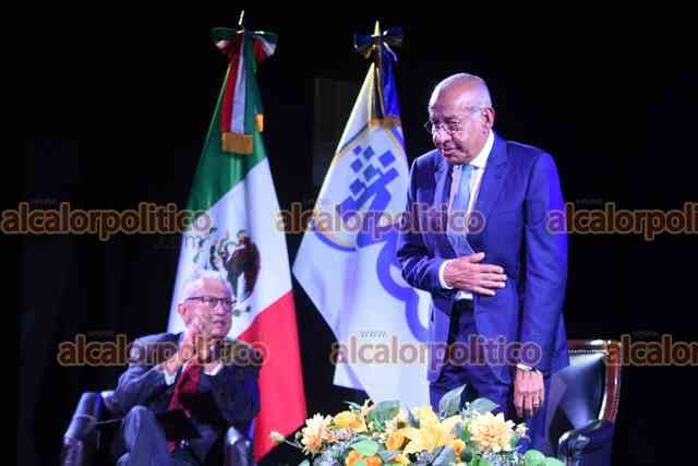 Xalapa, Ver., 18 de julio de 2035.- Los exrectores de la Universidad Veracruzana, Raúl Arias Lovillo, Víctor Arredondo y Sara Ladrón de Guevara asistieron a la cátedra “Jesús Reyes Heroles”, impartida por Ignacio Morales Lechuga, en el teatro “J.J. Herrera”.