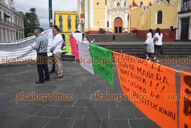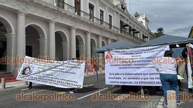 Xalapa, Ver., 29 de julio de 2025.- Docentes que exigen el pago del seguro institucional bloquearon la calle Enríquez, frente al Palacio de Gobierno. Recriminan que son atendidos y escuchados, pero no les resuelven.
