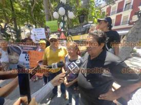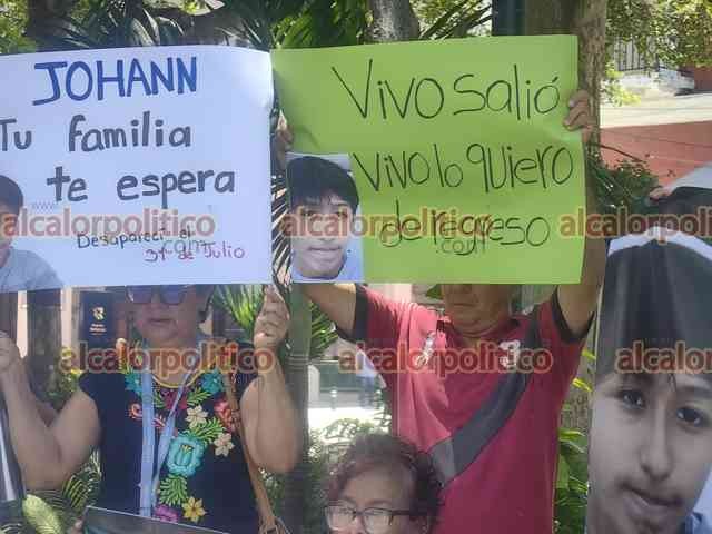 Veracruz, Ver., 4 de agosto de 2025.- En el Zócalo, se manifestaron familiares y amigos del joven Johann, de 16 años, quien desapareció desde el pasado jueves 31 de julio.