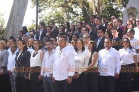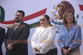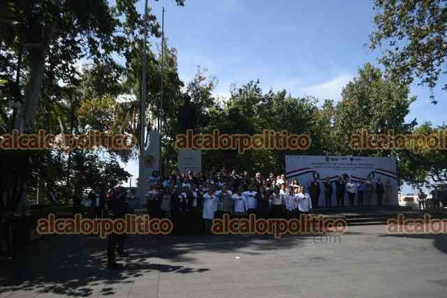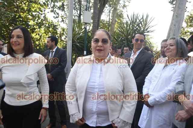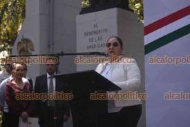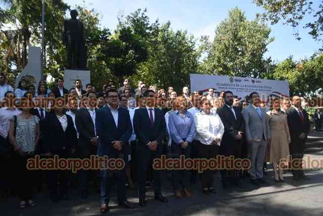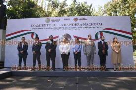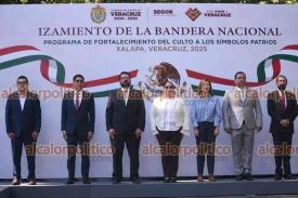 Xalapa, Ver., 11 de agosto de 2025.- La secretaria de Educación, Claudia Tello, participó en el izamiento de bandera como parte del programa de fortalecimiento del culto a los símbolos patrios, en el parque Juárez.