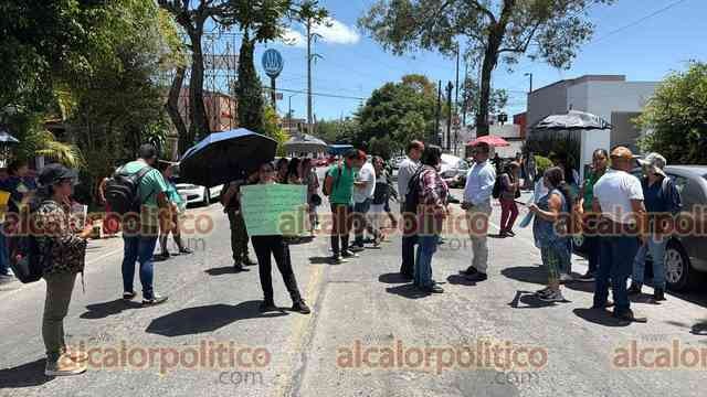 Xalapa, Ver., 13 de agosto de 2025.- Manifestantes de Antorcha Campesina cerraron la avenida Miguel Alemán, frente a CMAS, en demanda de obras.