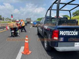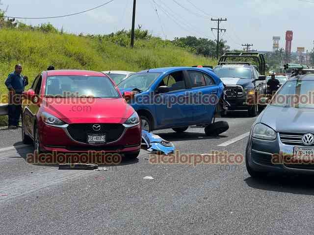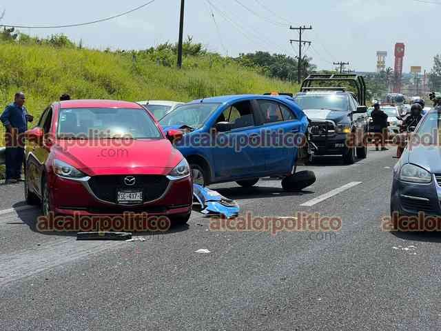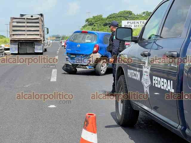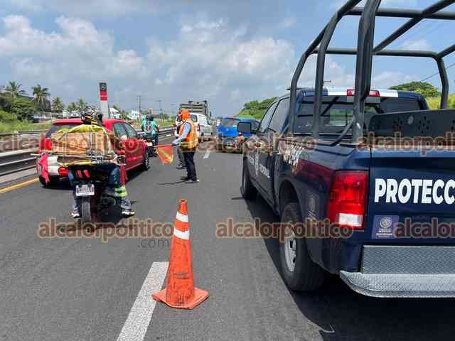 Veracruz, Ver., 14 de agosto de 2025.- Camión de carga impactó a automóvil, el cual se fue contra otro auto, en la autopista Veracruz-Cardel, a la altura de Río Medio, complicando la vialidad.