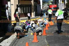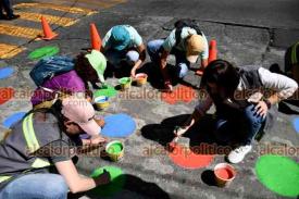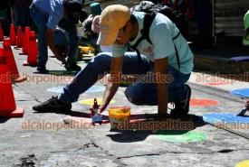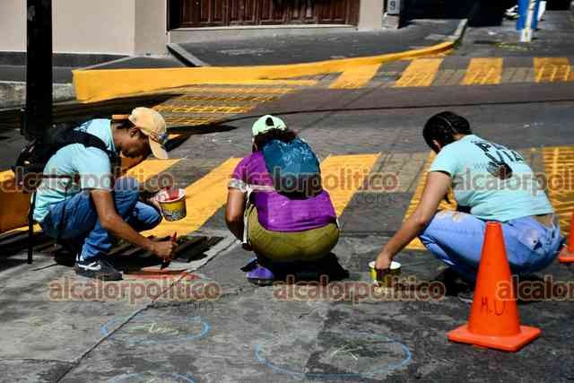 Xalapa, Ver., 14 de agosto de 2025.- Personal del Ayuntamiento intervino pasos peatonales en la calle de Allende, este Día Mundial del Peatón.