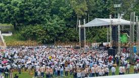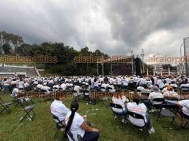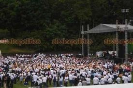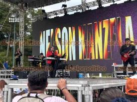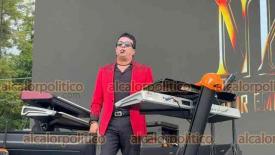 Xalapa, Ver., 4 de octubre de 2025.- El músico Nelson Kanzela amenizó la reunión de miembros de la Sección 32 del SNTE en el Estadio Xalapeño.