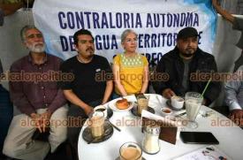 Xalapa, Ver., 5 de octubre se 2025.- En conferencia de prensa, integrantes de la Contraloría Autónoma del Agua y Territorio de Coatepec, piden a los ciudadanos hacer huelga de pagos hasta el próximo año, esto debido a despidos injustificados en CMAS Coatepec.