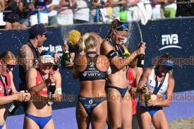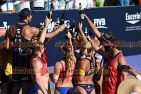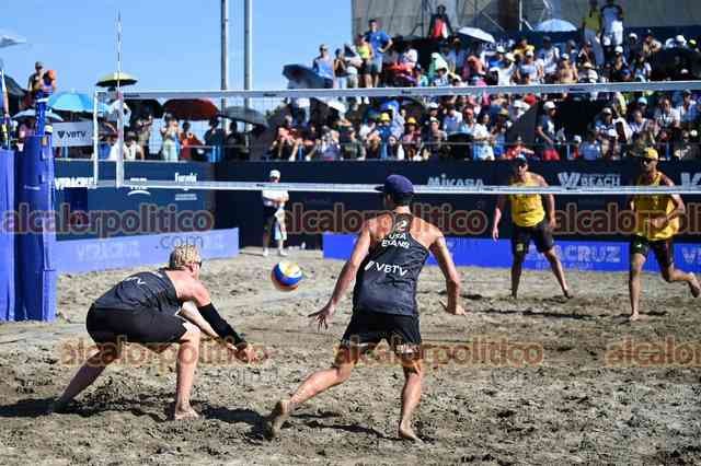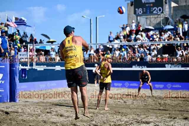 Boca del Río, Ver., 5 de octubre de 2025.- La final varonil del Volleyball World Beach Pro Tour Veracruz 2025, entre las duplas Budinger-Evans de Estados Unidos contra George-Saymon de Brasil, mantuvo a los asistentes al filo de sus asientos. La medalla de oro fue para los sudamericanos.